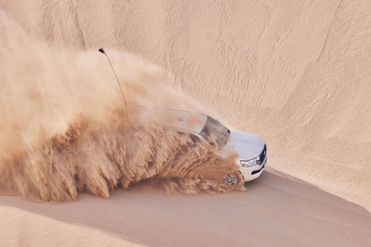 Насладете се на екстремно шофиране в пустинята и покорете извисяващите се дюни. Ще имате възможността да наблюдавате и да се докоснете до един природен феномен, който се среща на само още 2 места в света, далеч от арабския свят, а именно естествената граница на пясъчните дюни на катарската пустиня с Арабско море. Има още един природен феномен в пустинята, който е толкова мистичен, че привлича много търсачи на необичайни приключения, а именно „Въздишките на пустинята“, звуците, които се чуват наподобяват на стенания на жена, която сякаш търси помощ, реално се дължи на специфична комбинация между температурата на въздуха и преноса на определни въздушни маси и е рядкост да бъде точно прогнозирано.