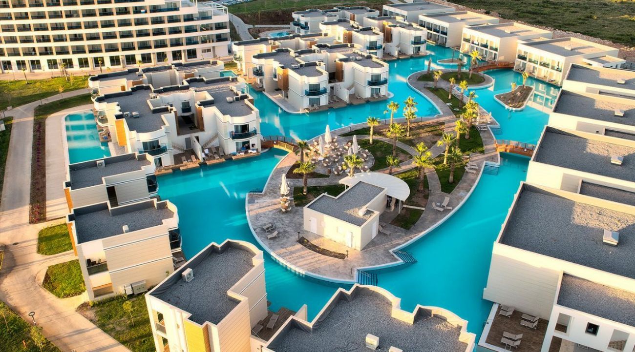 Оновен ресторант, 4 а- ла- карт ресторанта (с предварителна резервация), 5 бара, дискотека, 2 открити и 1 закрит басейн, аквапарк, водни пързалки, магазини, сладкарница, СПА център, паркинг. Заема площ от внушителните 200 000 кв. метра (200 дка). Разположен е на първа линия точно до широк пясъчен плаж. Отвори врати през май 2016 г. и от тогава се утвърждава на челна позиция сред най-луксозните комплекси в Егейска Турция. Предлага Ултра Ол Инклузив концепция на най-високо ниво като в асортимента на баровете са включени напитки като Ballantine’s, Absolute, Malibu, Havana Club и други. Разполага с огромна площ от 12 000 кв. метра с басейни (за деца и за възратни) и Аква Парк, което в това отношение го прави номер едно в Егейския регион. Хотелът разполага и със СПА център, който се простира на впечатляващите 2000 кв. метра, и Детски клуб с площ 500 кв. метра, в който има дори и кино салон. Плажът на хотела е с дължина 600 метра. Всеки турист остава впечатлен от мащаба и удобствата по територията му.