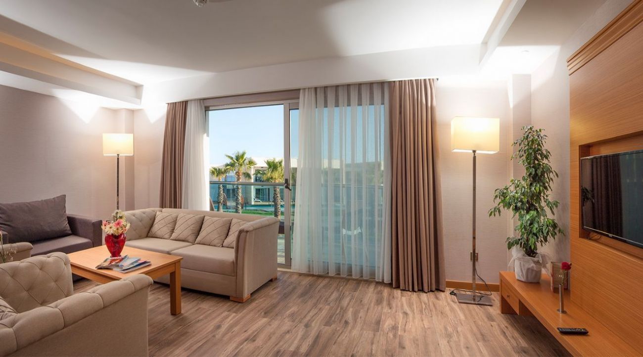 Хотелът разполага общо с 660 стаи. Всички стаи са оборудвани с климатик, телевизор, телефон, баня с душ/вана, сешоар, сет за чай/кафе, мини бар, сейф (безплатен), балкон, интернет. Всички стаи са оборудвани с климатик, 32-инчов телевизор със сателитна телевизия, телефон, баня, специализирана козметика за баня, сешоар, мини бар (безплатно ежедневно зареждане с вода и безалкохолни напитки), сейф (безплатен), сет за кафе и чай, безжичен интернет, балкон. Дизайнът на стаите е умело съчетание между съвременност и класика, а гледките, които се разкриват от тях към морето или комплекса, са прекрасни.