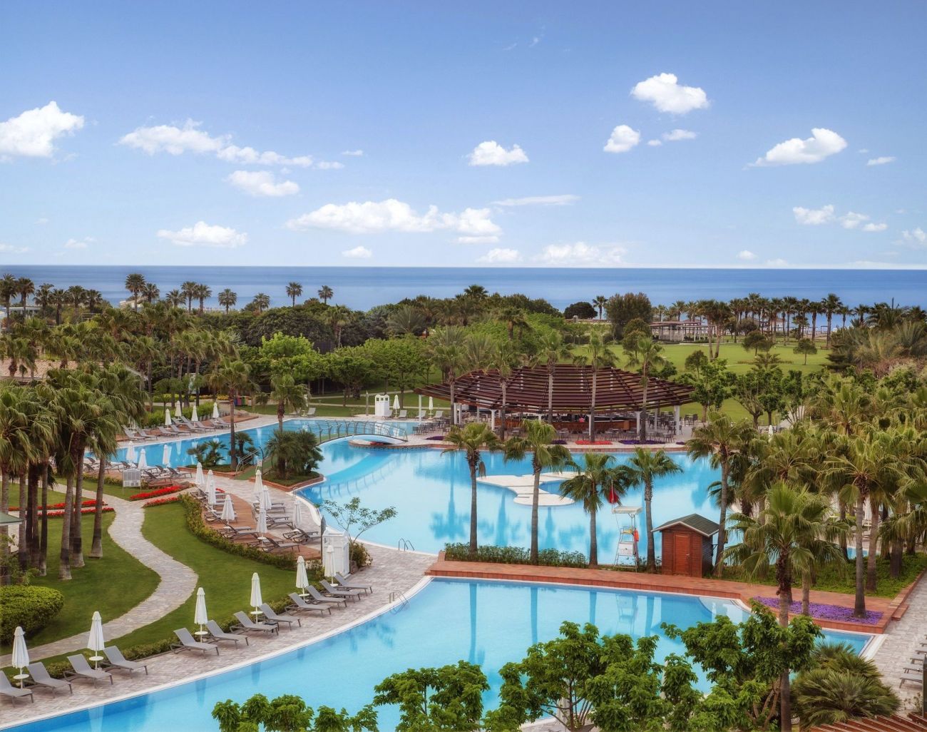 4 открити басейна с прясна вода (2057 кв.м, 768 кв.м (отопляем), 640 кв.м, 377 кв.м).