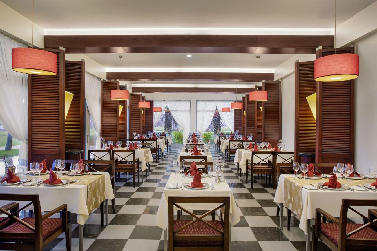 Основният ресторант е отворен 24 часа (цел ден и нощ), има детска маса, както и вегетариански кът.