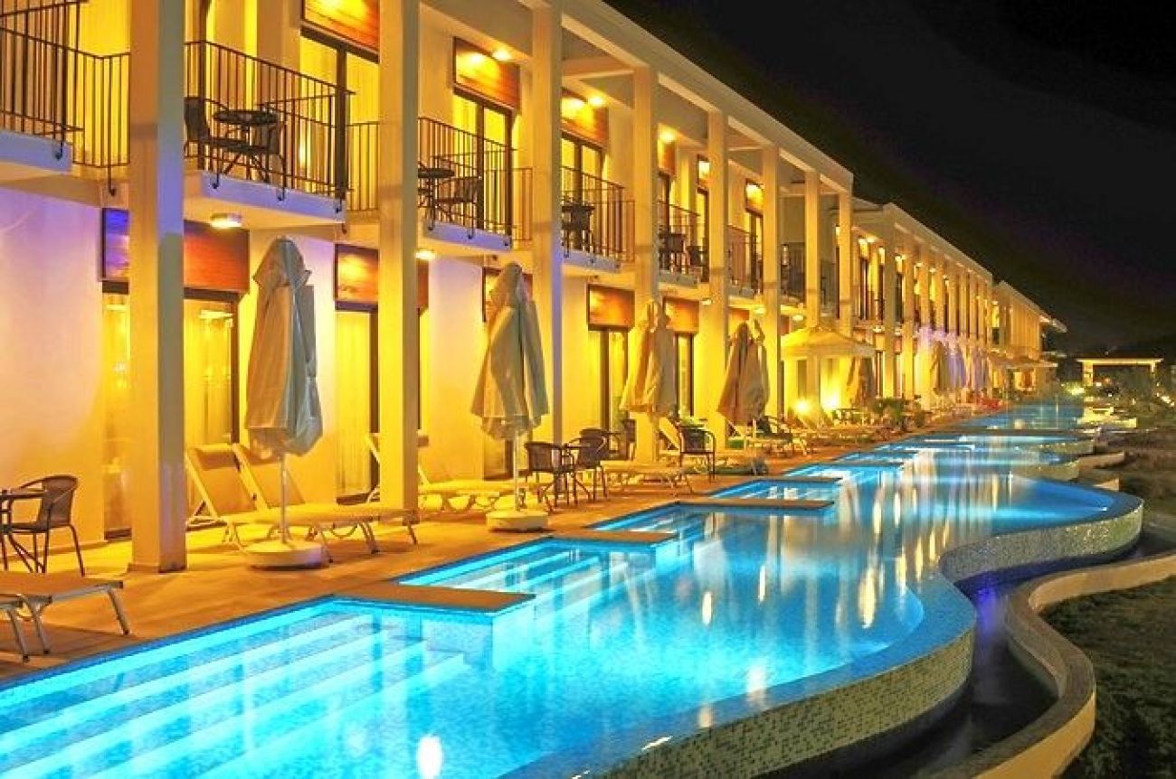 Построен е през 2012 година, простира се на територия от 35 000 м² с естествена лагуна.Хотелът е реновиран през 2017 година. Jiva Beach Resort е най-стилният хотел на крайбрежната алея Calis Beach и е лесно да се разбере защо. Хотелът разполага с някои фантастични съоръжения, включително басейни, зони за хранене и пълна развлекателна програма. Предлагайки луксозни стаи, включително апартаменти за плуване, и плажна зона за спокойно място за слънчеви бани и гледка към залеза, това е идеалното място за луксозен отдих.Амфитеатър Лекар (срещу заплащане) Пералня (срещу заплащане) Магазини Коли под наем (срещу заплащане) Wi-Fi (безплатно)