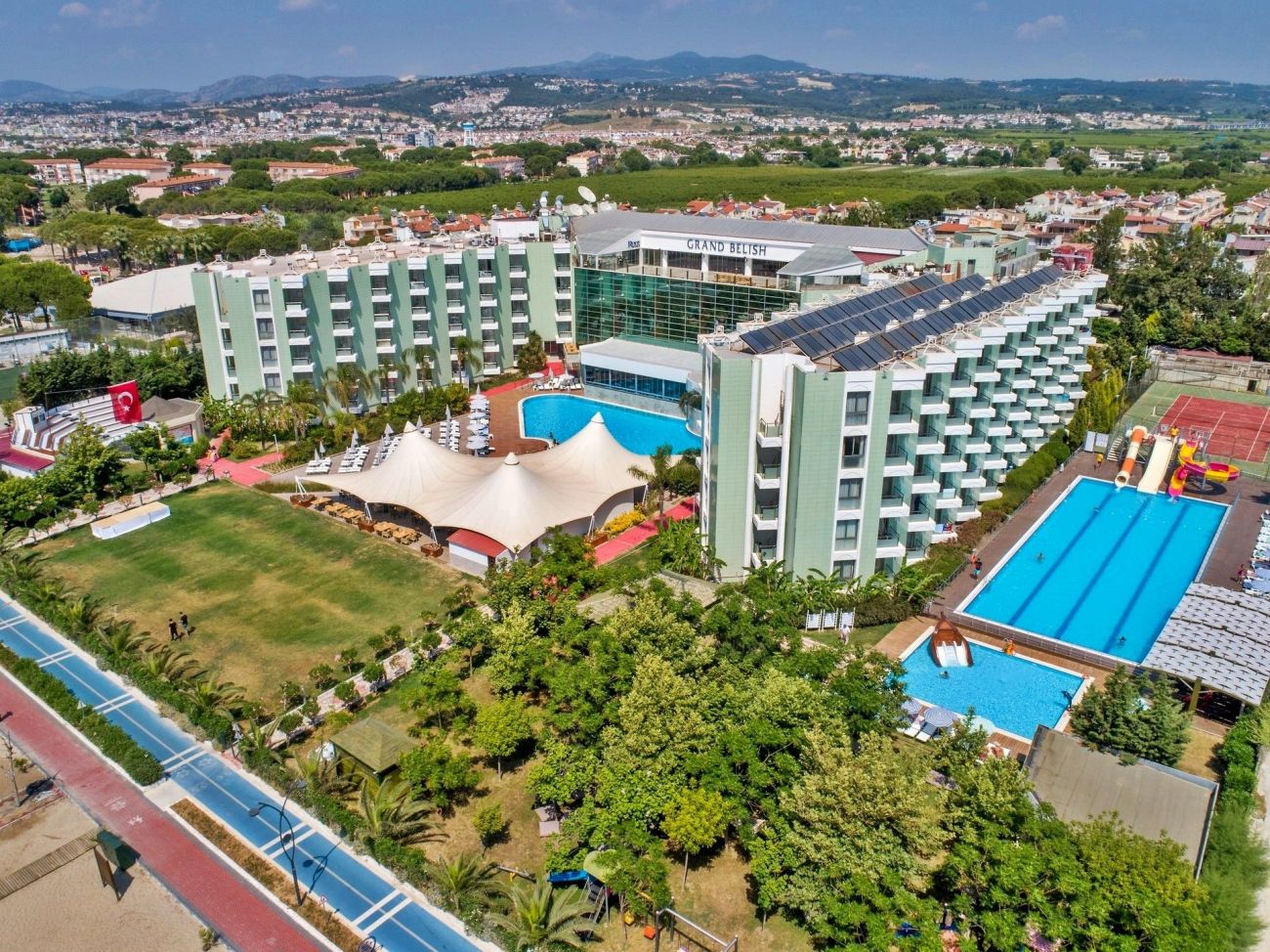 Хотел Grand Belish се намира в района на селището Давутлар, на около 12 км от центъра на Кушадасъ и на 80 км от най-близкото международно летище в гр. Измир. Хотелът е разположен на брега на един от най-хубавите пясъчни плажове в курорта Кушадасъ. Отваря врати през май 2010 г, заема площ от 12 500 кв. м и работи на база All Inclusive. Реновиран е през 2019 г.