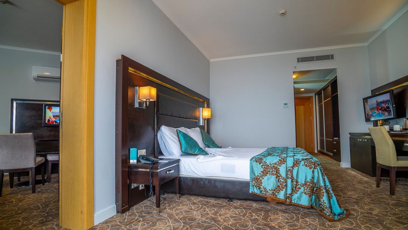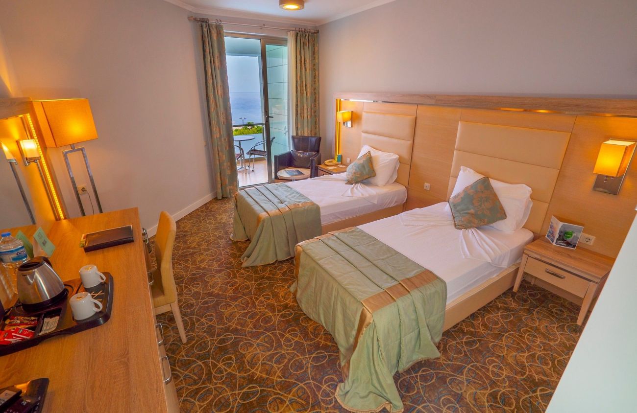 Хотелът разполага със 177 стаи, от които 146 стандартни (27 м²), 10 лардж (36 м²) и 19 фамилни стаи с две помещения (54 м²). Всички стаи са оборудвани с климатик, телевизор, телефон, баня с душ или вана, сешоар, минибар, електронен сейф, балкон. Всички стаи(с изключение на промо стаите) предлагат изглед към морето. Почистване на стаите и смяна на кърпите - всеки ден, смяна на спалното бельо - 2 пъти в седмицата.