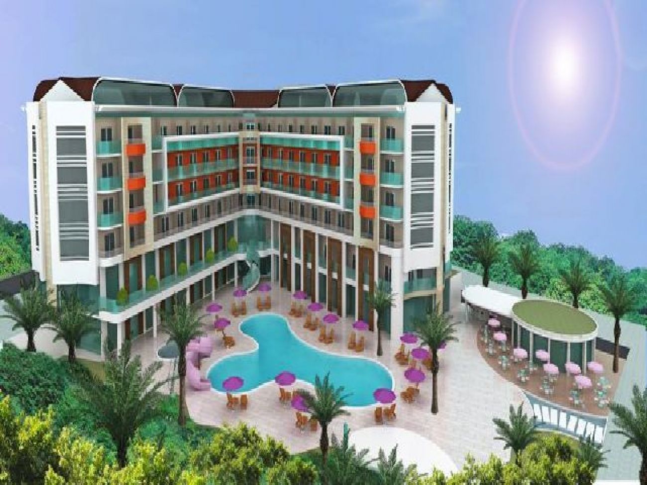 Хотелът разполага с 222 стандартни стаи (25 м2), външен басейн, детски басейн, вътрешен басейн, вътрешен детски басейн, 2 ресторанта, 3 бара, СПА център. Услуги предлагани в хотела безплатно: гимнастика, степ, тенис на маса, сауна, хамам, плажни кърпи, безжичен интернет, а ла карт ресторант (предварителна резервация). Услуги предлагани в хотела срещу заплащане: процедури в СПА центъра, детегледачка, фризьор, интернет кафе, пералня, лекар.