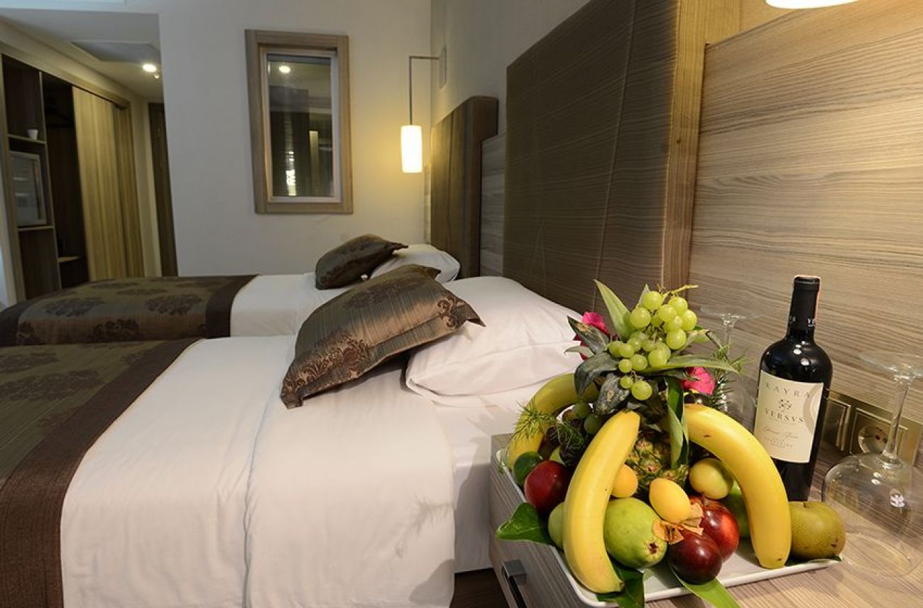 Всички стаи са с балкон,ламиниран паркет,електронно заключване на вратите, диван или фотьойл, мини бар, национално и международно сателитна тв - радио, директна телефонна линия, баня bouclets, домашни пантофи, сешоар, ТОАЛЕТНА, баня с душ, телефон в банята, централна климатична сътрудничество, цифров safebox.