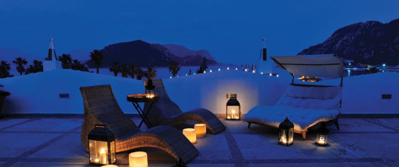 На 105 км. от летището в гр. Даламан, 8 км от центъра на Мармарис, 500 м. от Ичмелер, на брега на морето със собствен плаж – пясъчен. Реновиран 2005г.