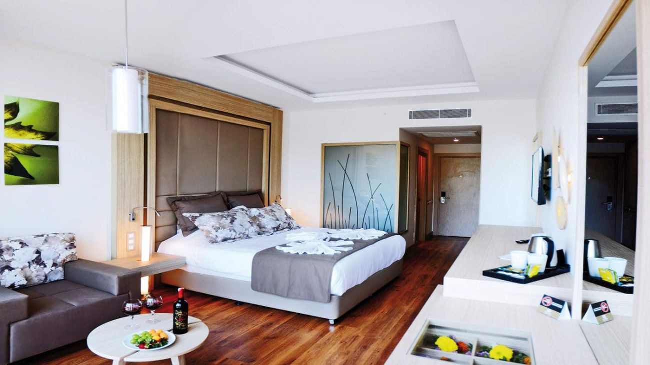 Хотелът разполага с 441 стаи, от които: двойни стаи с изглед към градината, двойни стаи с изглед към морето, фамилни стаи и супериор стаи. Всичките са оборудвани с: телевизор със сателитни програми, телефон, сейф, безжичен интернет, баня с душ или вана, мини бар (зарежда се всеки ден безплатно), балкон или тераса.