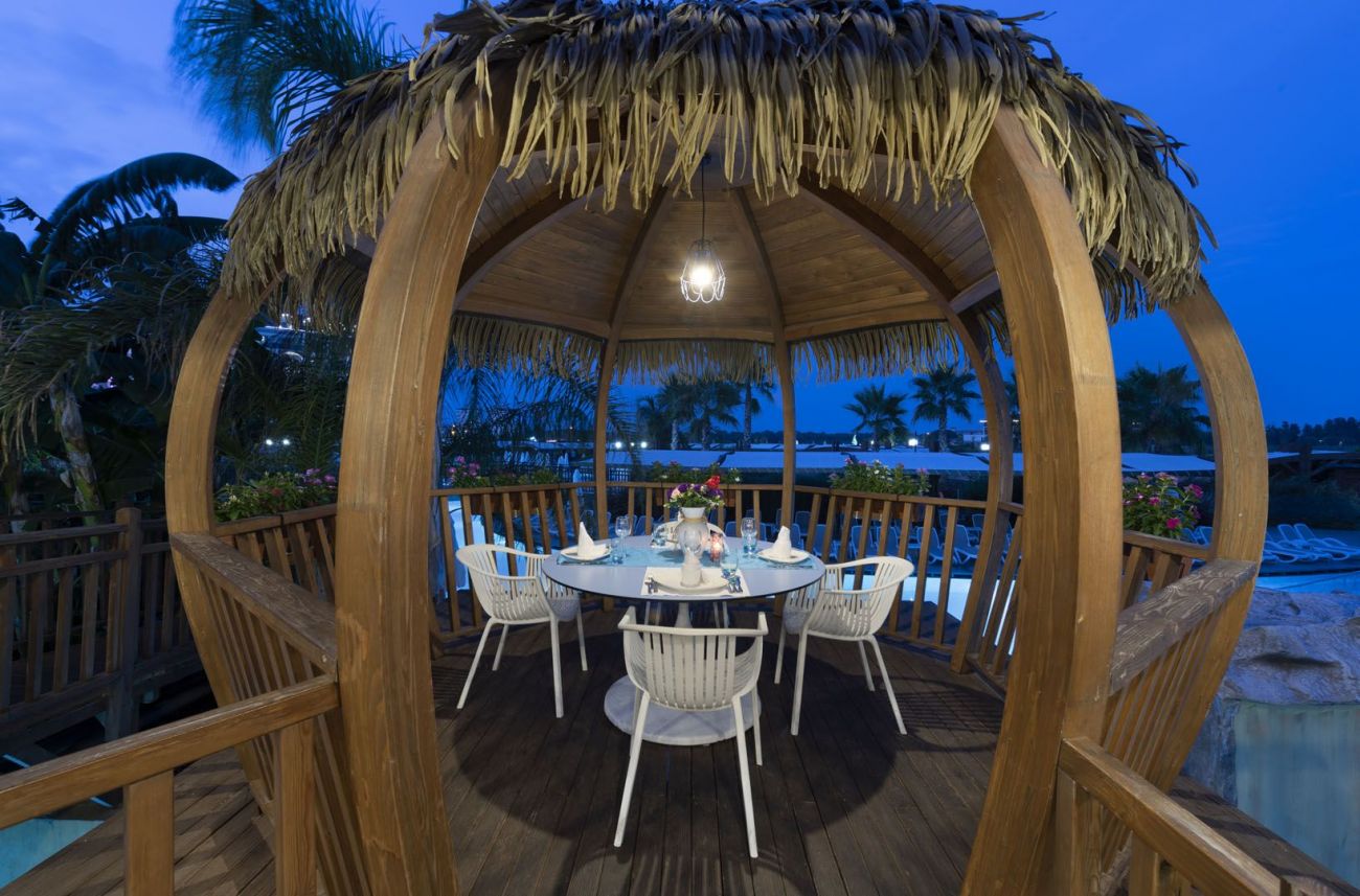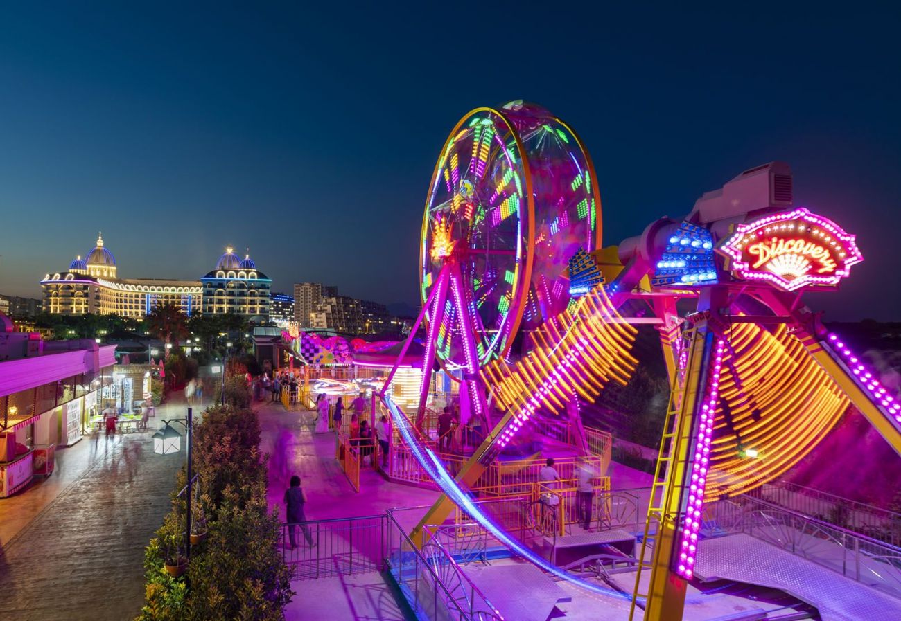 Основен ресторант, 5 а-ла-карт ресторанта (мексикански, османски, италиански, далекоизточен и рибен - отворен 01.06-15.10, платени), 5 бара, сладкарница, дискотека, 4 открити (1 с полуолипмийски размер, отопляем), 1 закрит басейн (отопляем), Аквапарк, Спа център, магазини, фризьорски салон, пералня, химическо чистене, лекарски кабинет, 2 конферентни зали.