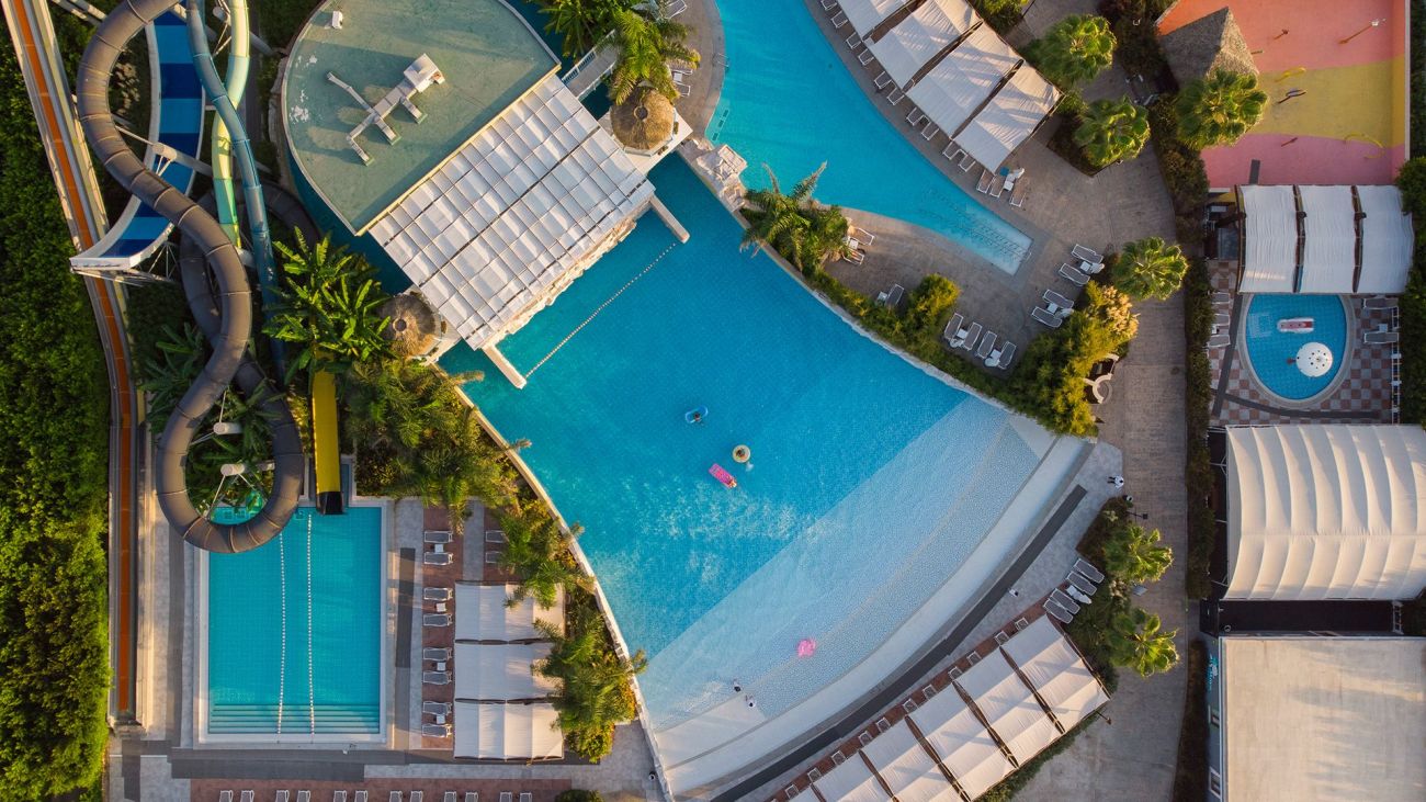 мини клуб 4-12г., мини диско, детски бюфет, детски басейн, 6 детски водни пързалки, лунапарк (безплатно).