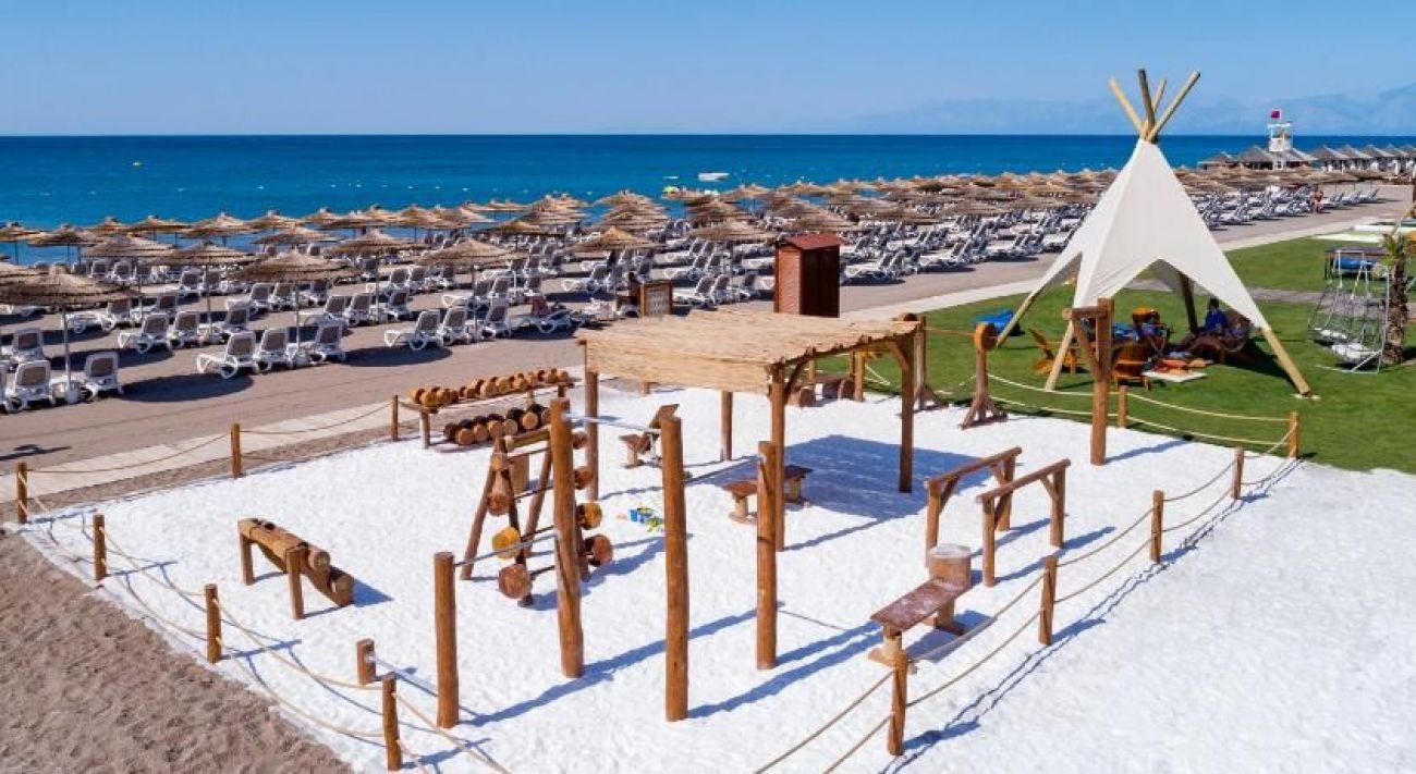 Собствен, пясъчен, на 900 метра от хотела. Функционира шатъл по суша и по вода. Чадъри и шезлонги на плажа и при басейна - безплатно.