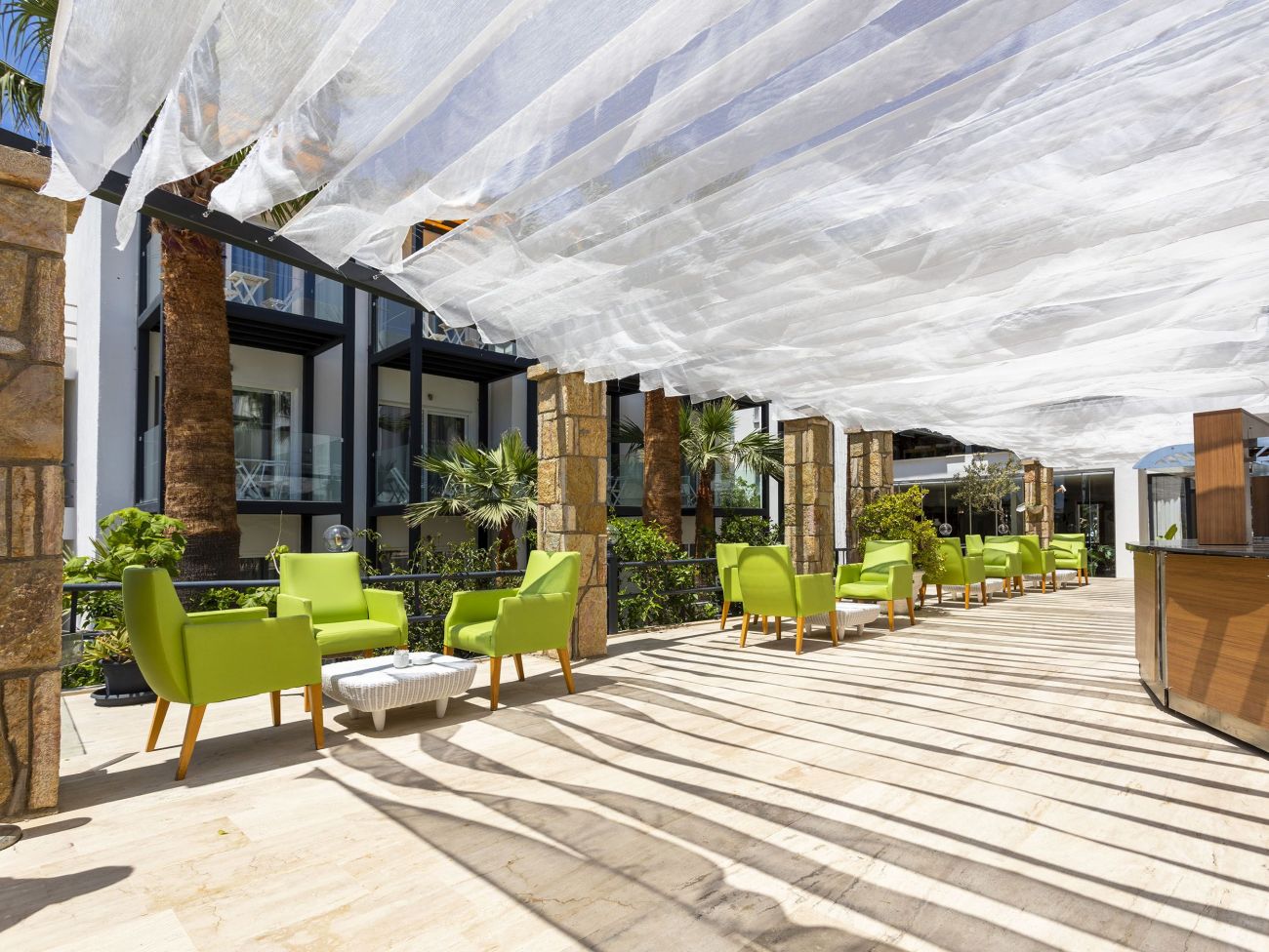 Хотелът се намира на 23 км от град Бодрум, на брега на морето. Състои се от една 3-етажна сграда.