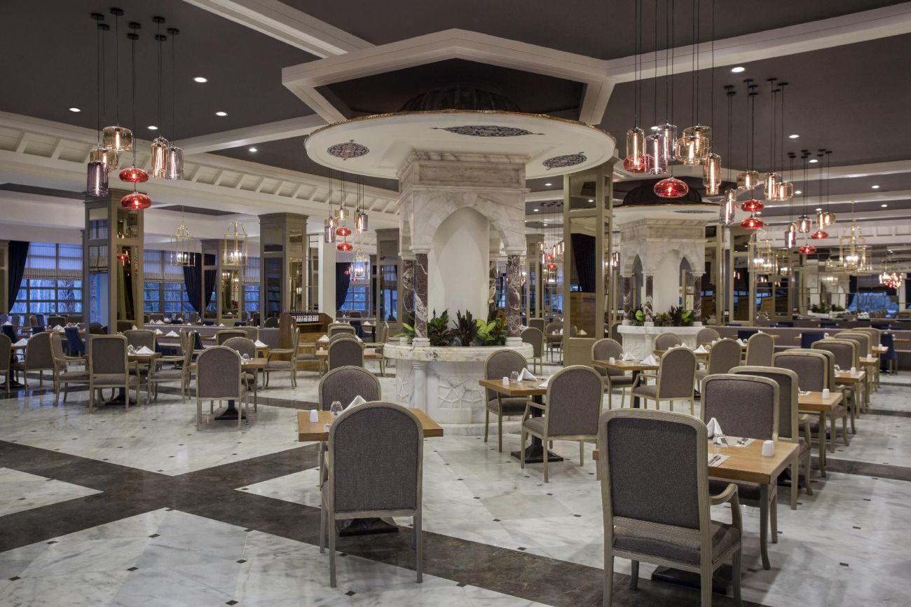 Основният ресторант предлага богат бюфет, с пресен сок бар и разнообразие от местни и международни ястия. При заявка се предлагат специални диетични, вегански и вегетариански ястия.