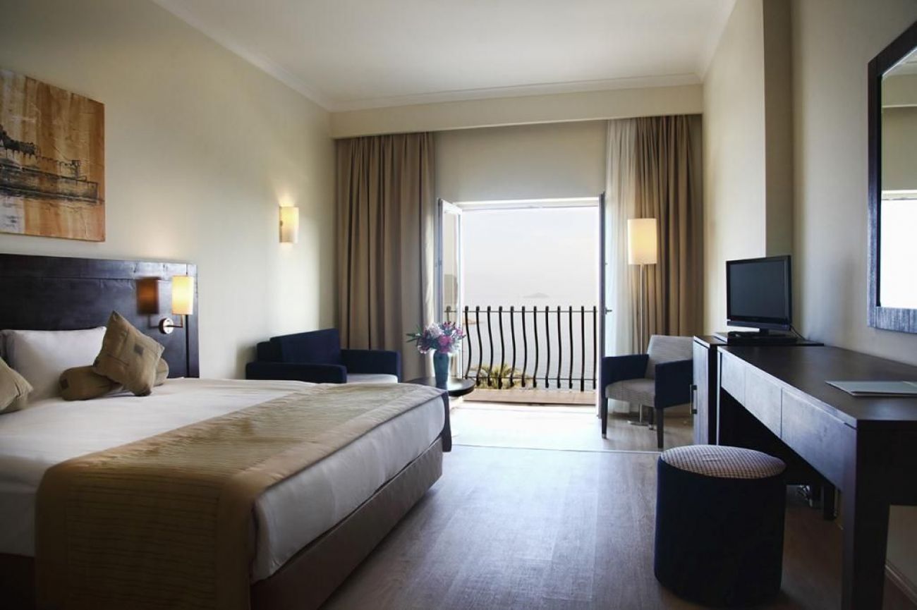 вана, сешоар, халат (във всеки suite), чехли (във всеки suite), електрическа кана, централен климатик, телевизор, телефон, мини-бар (безалкохолни напитки и бира се зареждат ежедневно, безплатно), сейф (безплатно), под - мокет (Main Building), теракот (Myndos Club), френски балкон, почистване на стаята ежедневно, смяна на спално бельо 3 пъти седмично, кабелен интернет (платено), room service (платен, 24 часа), turn down service (за всеки suite)